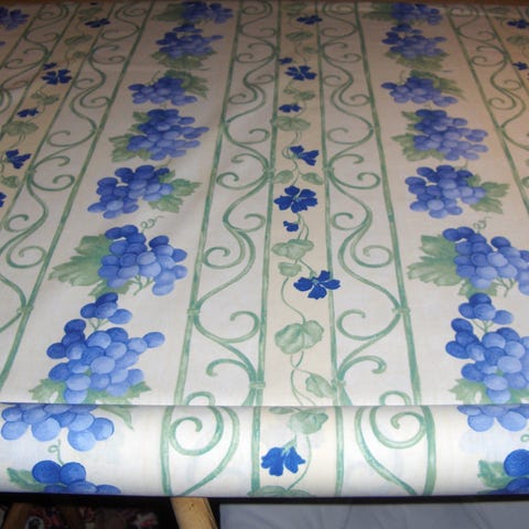 Nyt Provencestof i bomuld. Det er gult, blåt og grønt.