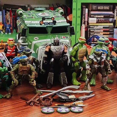 En sjælden TMNT "Mini Mutants Party Wagon Playset" Mirage Studios, Playmates Toys 1995