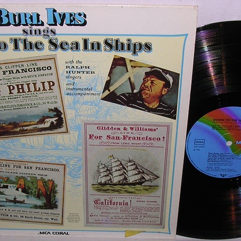 Burl Ives vinylplade med sort vinyl og rød label. Pladen indeholder musik af Burl Ives og leveres i original cover med billede af kunstneren. Velegnet til samlere og musiklyttere.