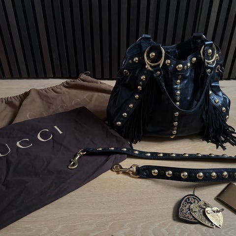 Gucci Læder Taske til kvinder i sort farve. Tasken er fremstillet af læder og kommer med kæde-rem. Egnet til daglig brug og forskellige anledninger.