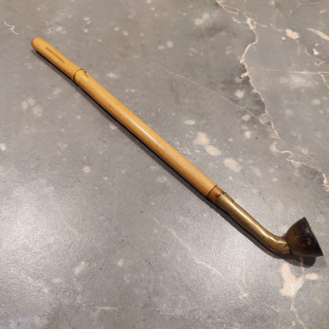 Piben er 17 cm i længden, skålen 7 cm H og 6,6 cm Ø, kammer 2,5 cm Ø