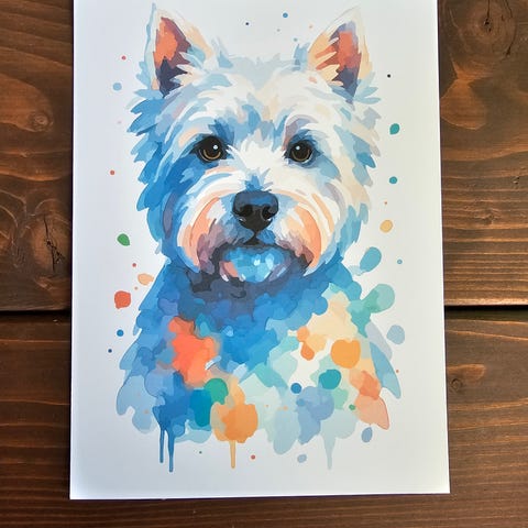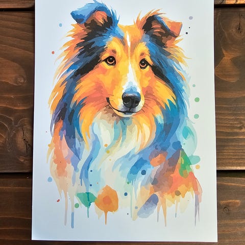 Billede af Chow Chow - Rød med watercolor art. Printet på 250g papir.