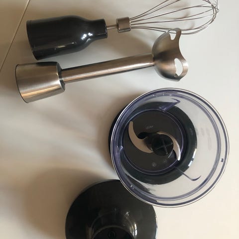 Moulinex Blender 1 køkkenblender i hvid farve. Blenderen har en robust plastkande med låg og en kapacitet til at blende frugt, grøntsager og andre ingredienser. Enheden er designet til almindelig husholdningsbrug.