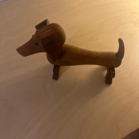 Figuren er en stiliseret fugl/hund/dyr udskåret i træ med glatte linjer og organisk form. Tilskrives ofte Kay Bojesen- Bemærk at mail, chat og beskeder ikke besvares, og varen skal købes på knappen "Gå til varen". Efter reservering af varen har du 10 dage til at afhente den i den butik, varen er på lager i.
