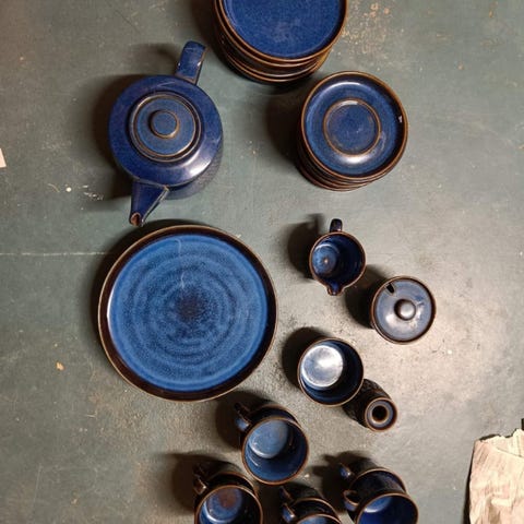 Blåt te-stel m.m.