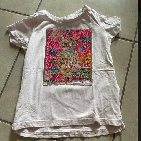 T-shirt, Med palietter, H&M, str. 110, Rigtig fin stand med sommerfugle palietter på maven