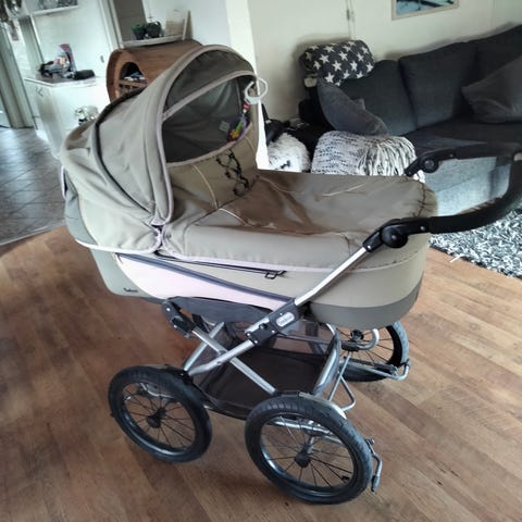 Fint og vedhold barnevogn. Der mangler to knapper til overtræk dog fungeret fint uden dem.