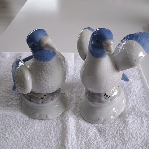 To smukke duer fra Vesttyskland, både lidt mormor og lidt kitsch, ikke lige min stil, men har haft dem stående lidt fremme, og er overraskede over hvor fine og smukke de faktisk er.