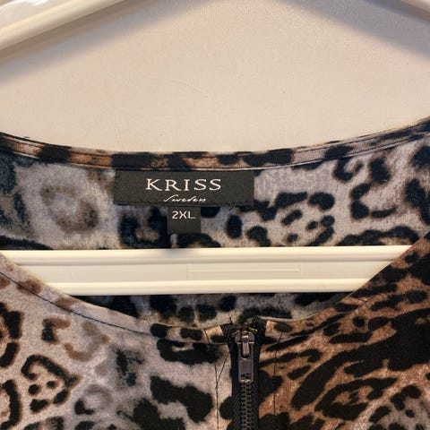 Kriss Bluse i multifarvet mønster, størrelse XXL til kvinder. Blusen har et farverigt design med røde og sorte nuancer og et let, flowy materiale. Velegnet til hverdagsbrug eller mere formelle lejligheder.