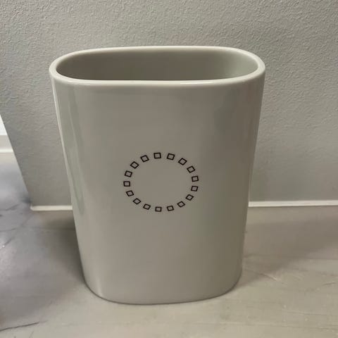 Hay Vase i keramik med sort og hvid stribet mønster. Unikt design med to udløb, hvilket gør den velegnet til dekorative formål eller som blomsterholder.