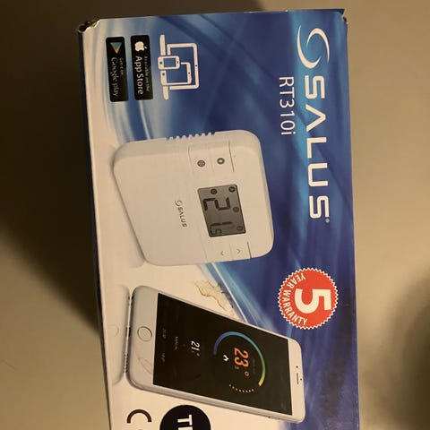 Salus V520WF termostat og modtager i hvid farve. Termostaten har digitalt display og mulighed for trådløs styring. Modtageren er designet til at blive brugt sammen med termostaten for at regulere varmeinstallationer. Produktet er egnet til boligbrug og hjælper med temperaturkontrol.