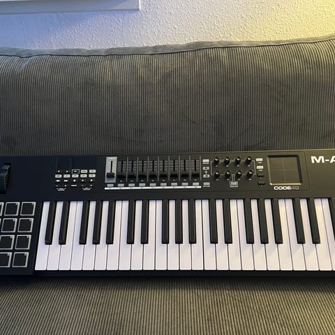 Sort M-Gear sustainpedal med kabel og jackstik.