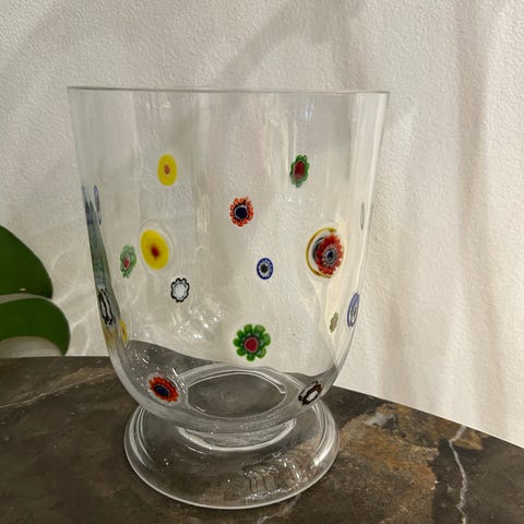 Flot Murano glaskunstskulptur i form af en engel, der bruger den klassiske millefiori-teknik.