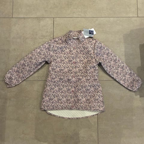 Helt ny quilted termojakke i mørk marineblå farve (name it farve “dark sapphire”). Str.110. Ribkant ved ærmerne. God længde bagpå hvor der også er refleks ved numsen. 100 % genanvendt polyester. Købt som “ekstra” jakke som aldrig blev nødvendig at tage i brug. Har blot hængt i skab. Ingen kontakt med røg eller dyr.