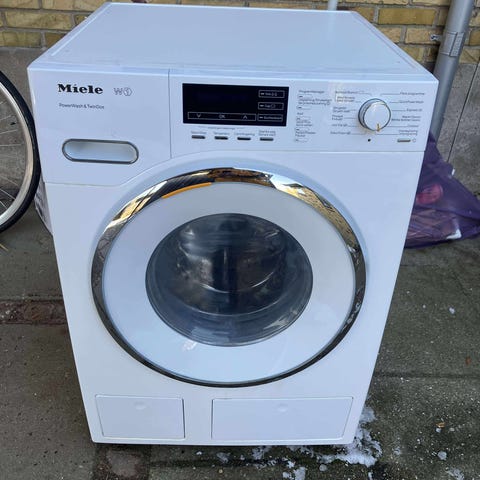 Bruseplade til Miele TwiinDos vaskemaskine. brusepladen er renset komplet for kalk og fungerer. Manual for udskiftning kan skaffes.