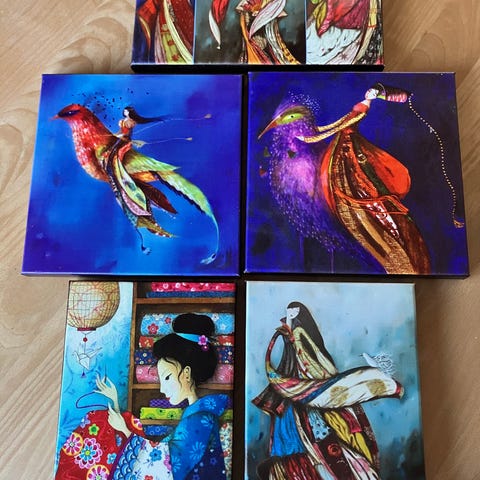 5 små billeder der måler 26 x 20 cm. Fra ikke ryger hjem. Pæne rene og er som nye. Fejlkøb. Kan ses på adressen Jens Baggesens vej 8210 Århus v alle 5 til prisen 50 kr