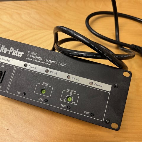 Lite-Puter F-402 fodkontrol til lysstyring. Den har 4 pedaler til at styre forskellige lysmønstre og funktioner samt en "black out" pedal. Styr hastigheden med knapperne. Tilslutning til lyd for at styre lyset.