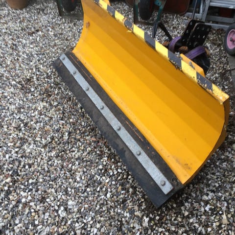 Sneplov med en bredde på 120 cm. Ploven er fremstillet i sort stål og har en robust ramme i rød farve. Til montering på gaffeltruck eller andet med gafler.