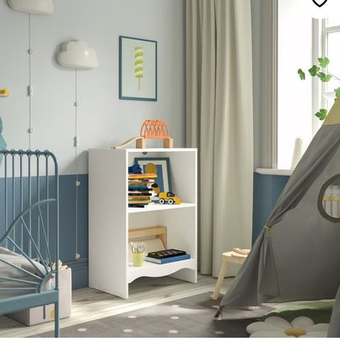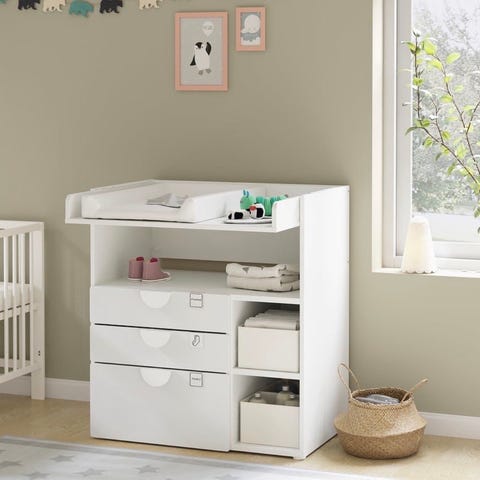 IKEA Skötbord børnemøbel i naturfarvet træ. Mål: 72 cm i længden, 53 cm i bredden og 87 cm i højden. Designet til at give en praktisk og sikker plads til bleskift og opbevaring af babyartikler. Passer til børneværelser og er lavet af holdbare materialer. Helt som nyt men står samlet. Ekstra opbevaringskasser kan man tilkøbe i ikea. Nypris 300 kr.