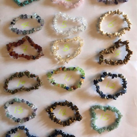 Lav selv din egen halskæde, armbånd eller andet kreativt med disse små, uregelmæssige grønne og røde sten med hul igennem. Materialet fremstår som polerede natursten. Velegnet til brug som tilbehør til forskellig smykke fremstilling.