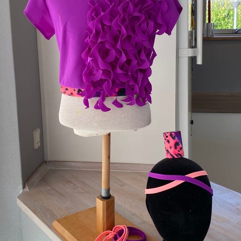 Der følger hårtårn og halsbånd med. Sæt selv leggings til.