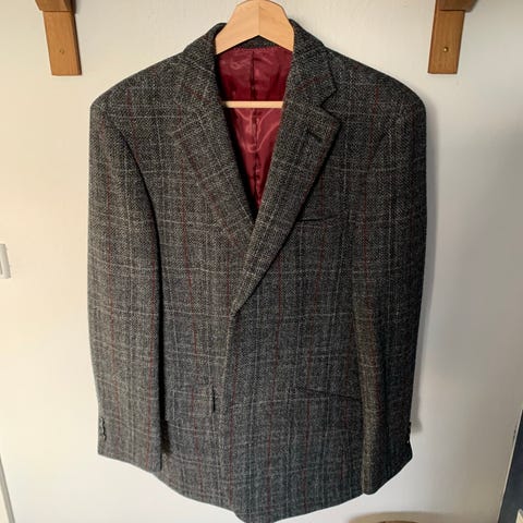 Dobbelte slidser bagpå. Tre ydre lommer, tre inderlommer.