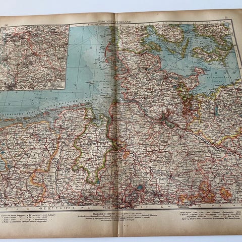 Rigtig flot kort fra gammelt atlas udgivet i 1922, som vil pryde flot på enhver væg