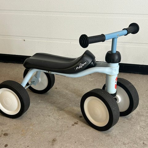 Pukylino løbecykel i retro blå, 8", til alder: 1-3 år, personhøjde: 75-90 cm.