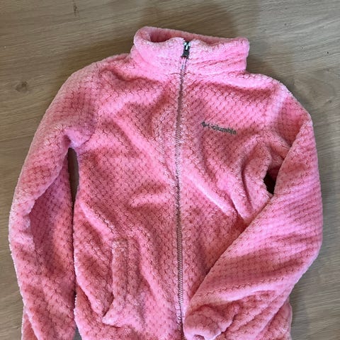 Columbia jakke i lyserød farve, str 152, designet til piger. Jakken har en quiltet struktur med lynlås foran og hætte. Indvendigt er jakken foret med et blødt materiale for ekstra komfort