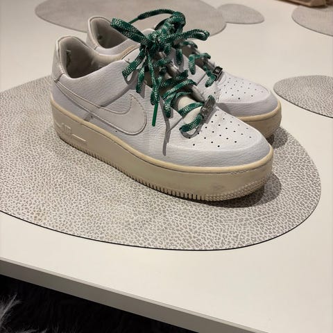 Nike Air Force sneakers i størrelse 40 med leopardprint. Skoene har en klassisk lav profil og gummisål med mønster for greb. Overdelen er lavet af materiale med leopardmønster og hvide snørebånd. Velegnet til hverdagsbrug.
