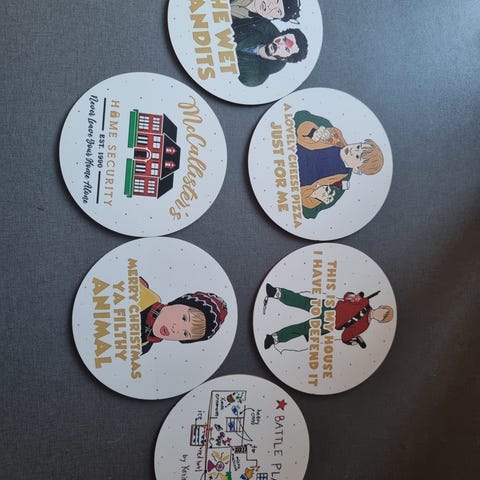 Helt nye, hjemmehæklede glasbrikker, der forestiller snefnug. Hæklet i genanvendt bomuldsgarn af høj kvalitet. Måler ca. 19 cm i diameter. Prisen er for alle 4 stk.
