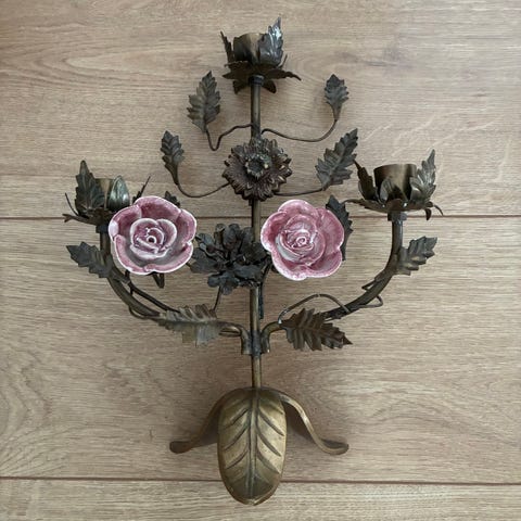 Fin gammel fransk blomster lysestage i messing.