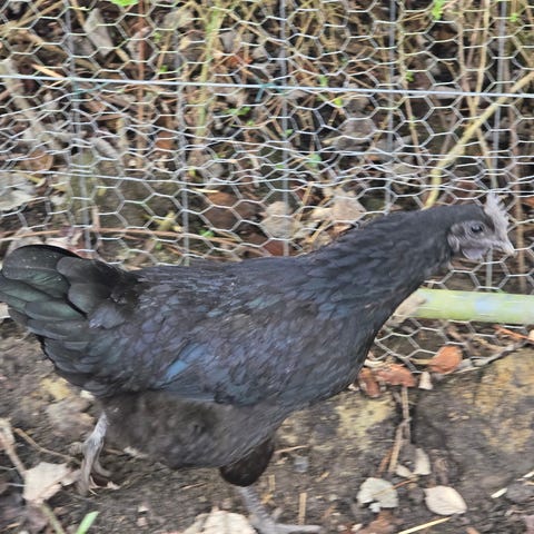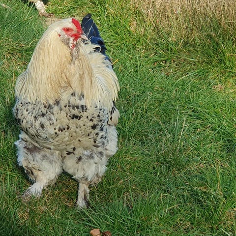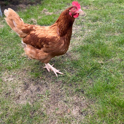 Flok høns med hane. Fuglene har overvejende brun fjerdragt med mørkere områder og røde kamme. Egner sig til hold i hønsegård eller mindre landbrug. Antal, alder og race er ikke oplyst og bør aftales nærmere med sælger.
