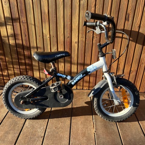 Rocky 5000 børnecykel med 12 tommer hjul, den er brugt men fungere som den skal og med fine dæk.