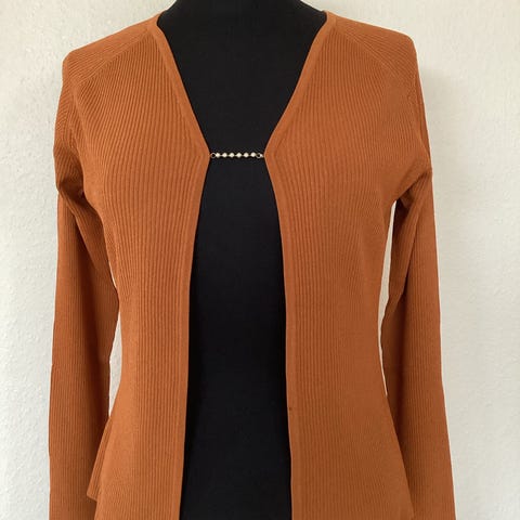 Meget smuk strikket cardigan i brun farve, aldrig brugt. Størrelse S