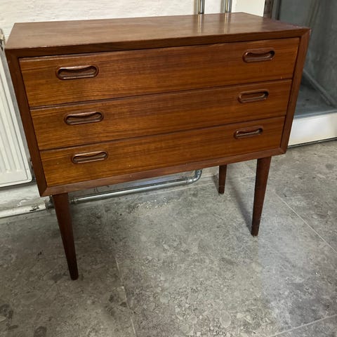 dener i super form men mangler lidt finner i den ene side men står den ind mod en væg ser man det ikke ellers en lille fixer hvis maner fingernem og det er ikke hele toppe kun det man ser skuffer køre godt