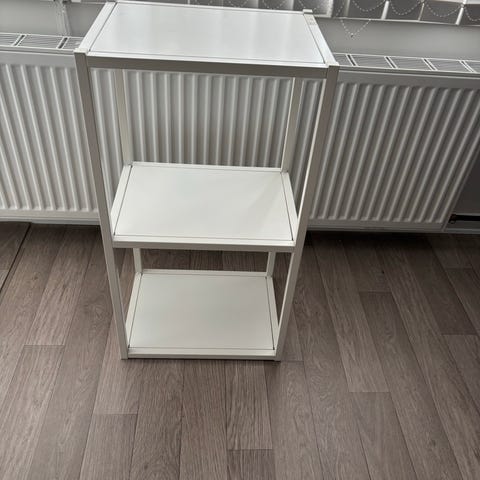 Jeg sælger tre stk. ENHET stel med vægskinne og hylder, farve antracit, mål 40 x 15 x 75 cm. Reolerne er under 6 måneder gammel og står som nye. Der medfølger også kroge, på to af den. Så der er fire kroge i alt
