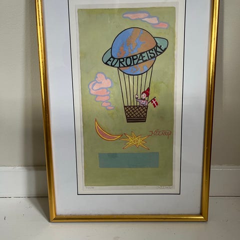 Nummereret litografi af Henry Heerup i ramme med passepartout.