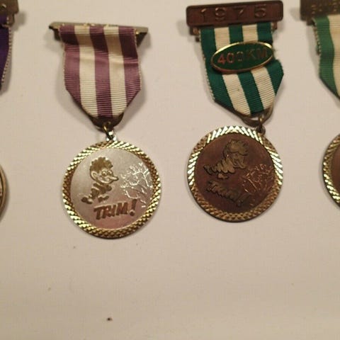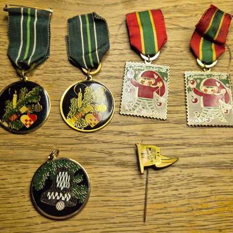 Der er bl.a. medaljer fra trim-march m.m.