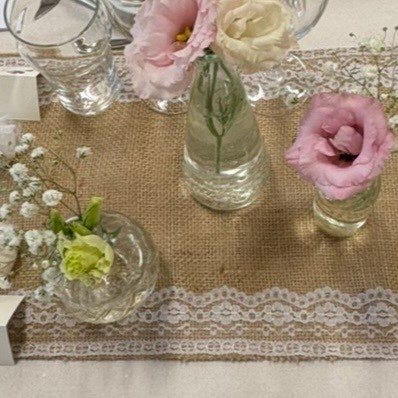 Håndvevet bordløper i rødt stoff med hvite tradisjonelle mønstre langs kantene. Passer til dekorasjon på bord, spesielt egnet for sommerbruk i juli. Materialet er vevd tekstil, og designet har et klassisk utseende.