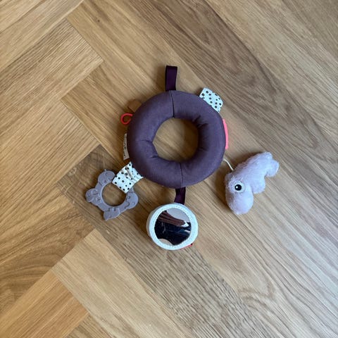 F.eks. super til at hænge rangler på barnevognen/klapvognen/sengen/bilsædet med.