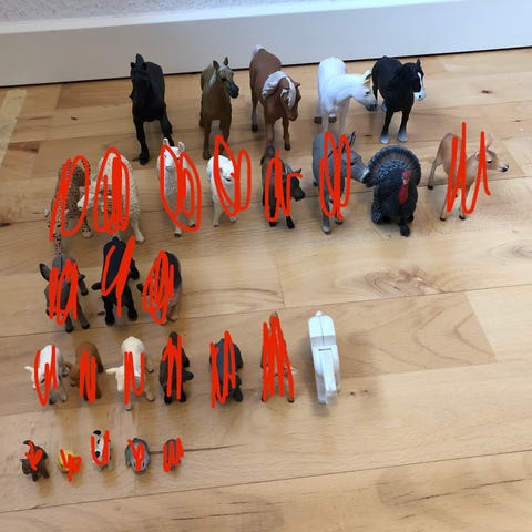 Dyr, 11 små figurer/dyr, Figurer, 11 farvestrålende dyr til leg eller din sættekasse.