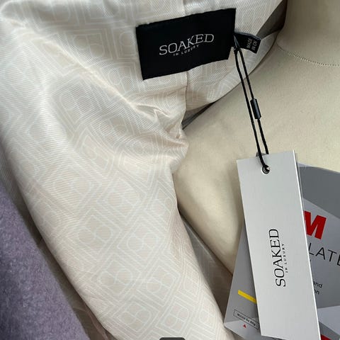 Ved fotograferingen ser et lille bitte hul samt en plet skade / i jakken ca 1X1 cm.
