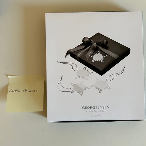 Georg Jensen gavemærker belagt med 24 karats guld i form af julesokker.