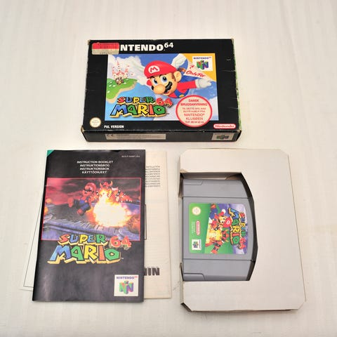 Flot eksemplar af Nintendo 64, Super Mario 64 sælges.