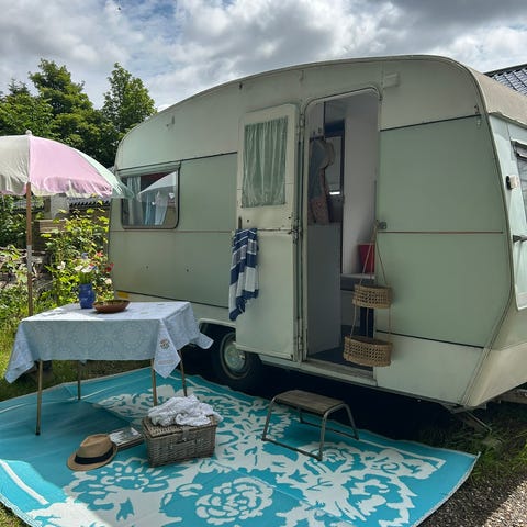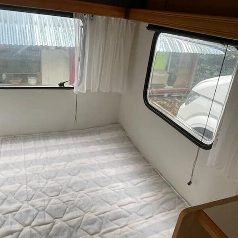 Ombygget gammel dobbeltakslet trailer påmonteret beboelsesvogn