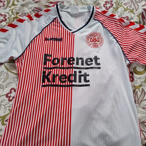 DBU landsholdtrøje str 152. Officiel autentisk sportsbeklædning med trykt nummer og navn på ryggen (Mæhle) nummer 5.