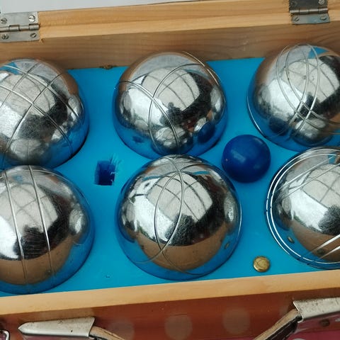 Sæt med 6 petanque kugler i kromfarve inklusive opbevaringskasse.