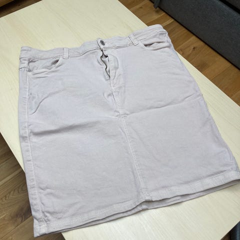 Pæn beigefarvet nederdel med sort elastikbælte, kun brugt et par gange og ca. årg. 2010, str. 42, Vero Moda, slids og lynlås bagpå