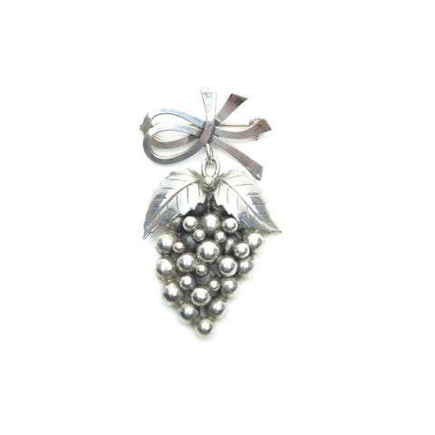 Elegant sølv broche dekoreret med blade og prydet med 3 sølv kugler for enden vejledt af spiraler stemplet 830S COF designeren hedder Carl Ove Frydensberg fra København og var aktiv fra 1949 - 1982. Brochen måler 55 mm lang nålen er lidt skæv med virker upåklageligt. Fremstår i fin vintage stand med almindelig brugs spor.